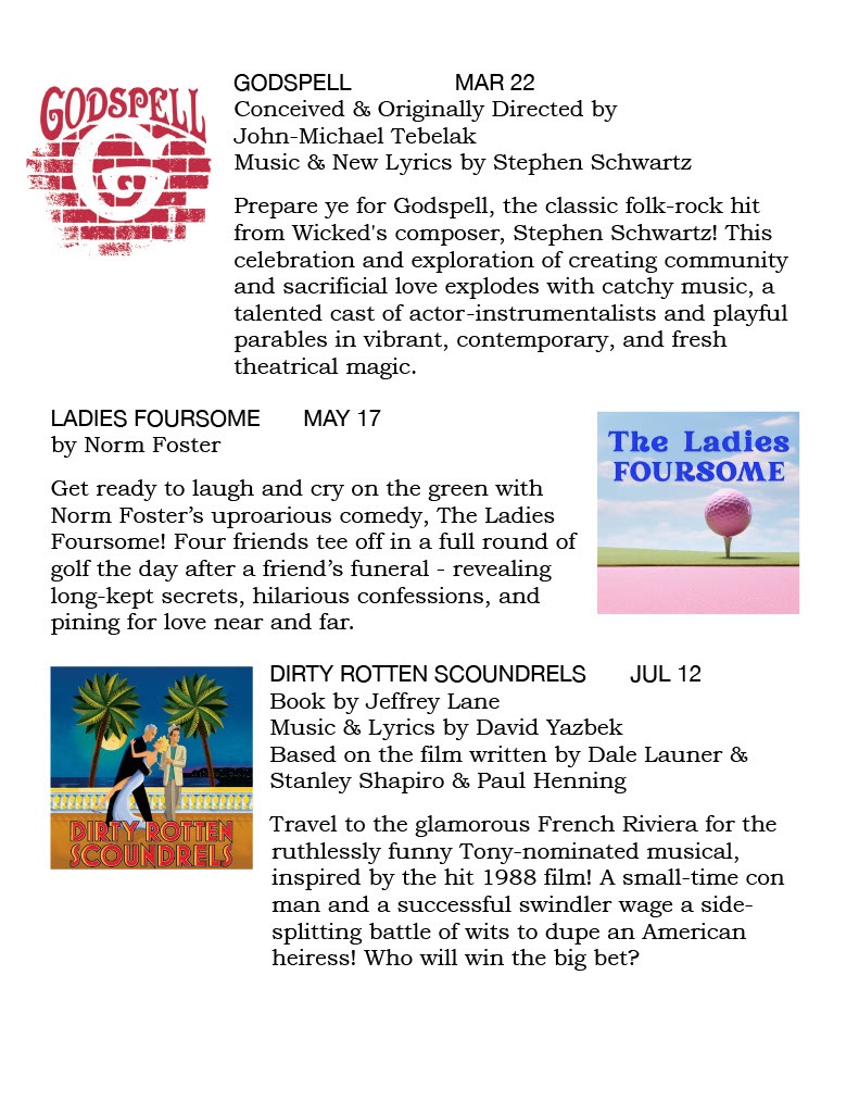 Day/Time: All performances are Sunday matinees at 2:00 pm.